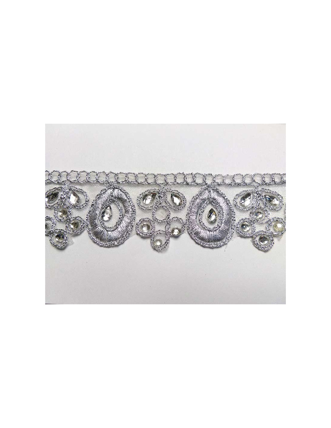 Galón pedrería lágrima plata