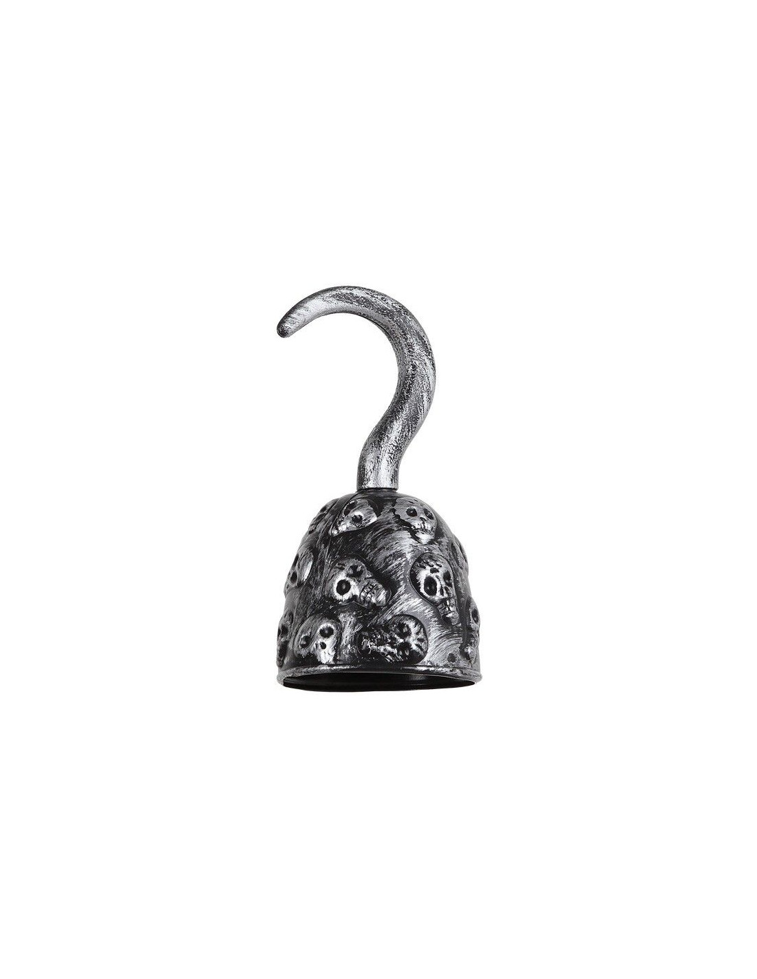 Complementa tu disfraz de Capitán Pirata con este garfio de pirata calavera. Fabricado en plástico. Incluye un original garfio de pirata calavera, con cabezas de esqueleto en relieve, disponible en color oro envejecido o plata envejecida y de dimensiones de 20cm de longitud.
