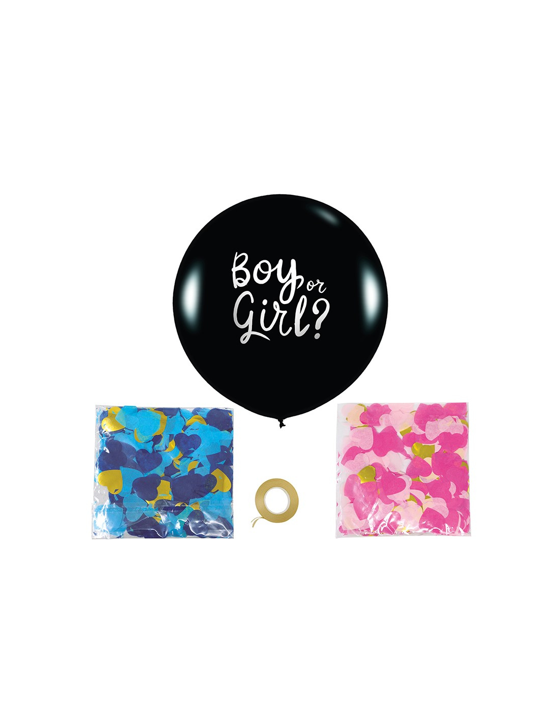 Globo Boy or Girl sexo bebe que incluye un globo negro de 50 cm, y confeti azul y rosa.