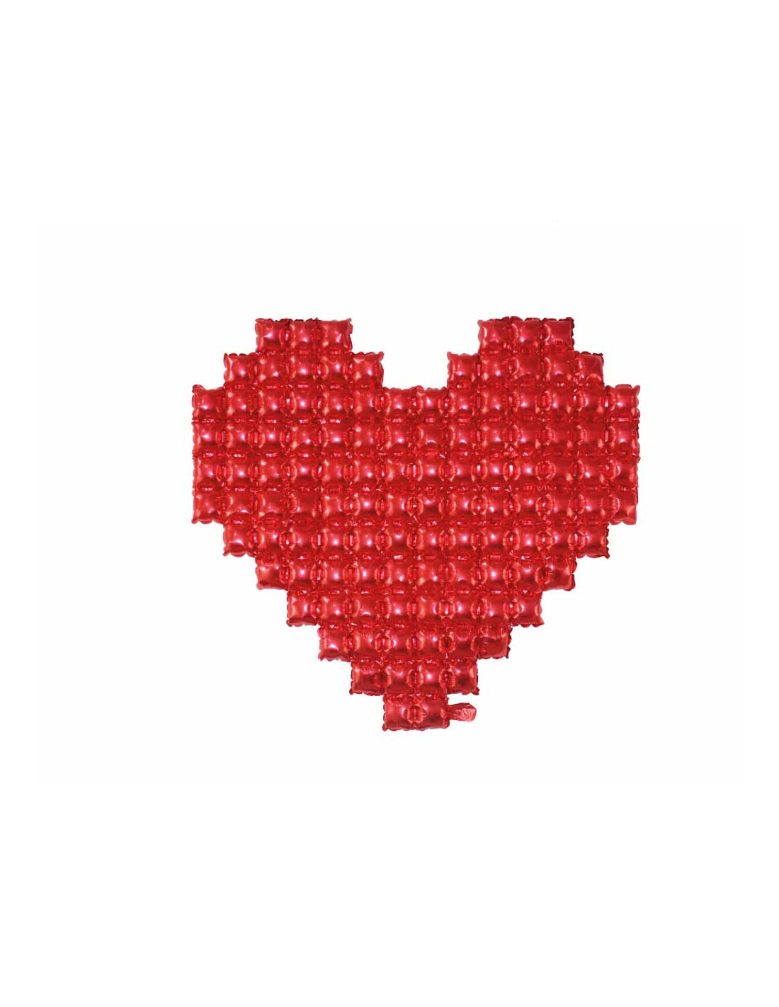 El globo corazón pixelado es de color rojo y mide 119x137cm.