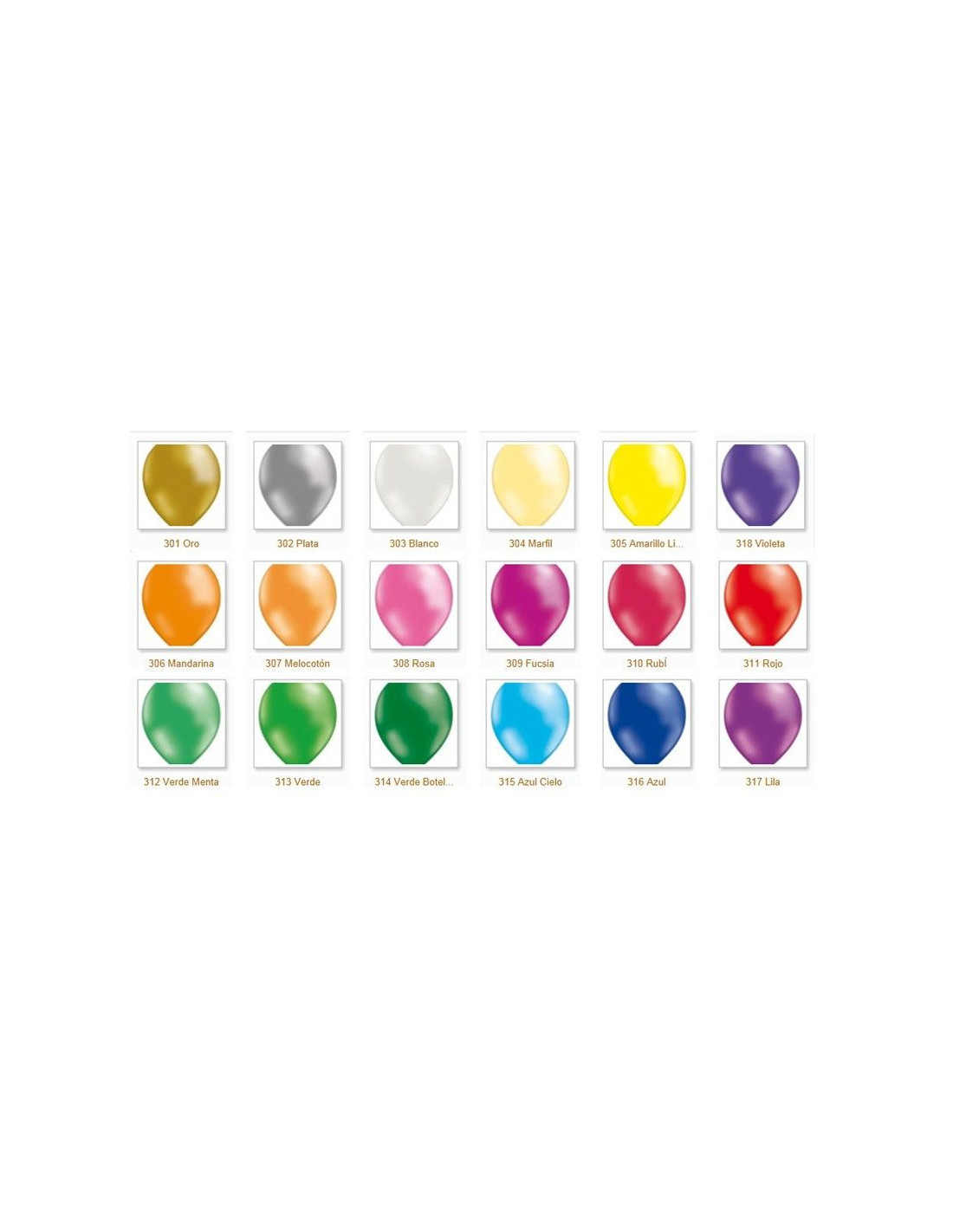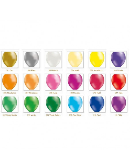 Globos de helio metalizados para cumpleaños y fiestas. Bolsa de 100 unidades , con unas dimensiones de 85cm de perímetro cada uno de los globos. Disponibles en color blanco, azul, rosa, morado, amarilllo, multicolor, oro, plata claro, rojo y verde.