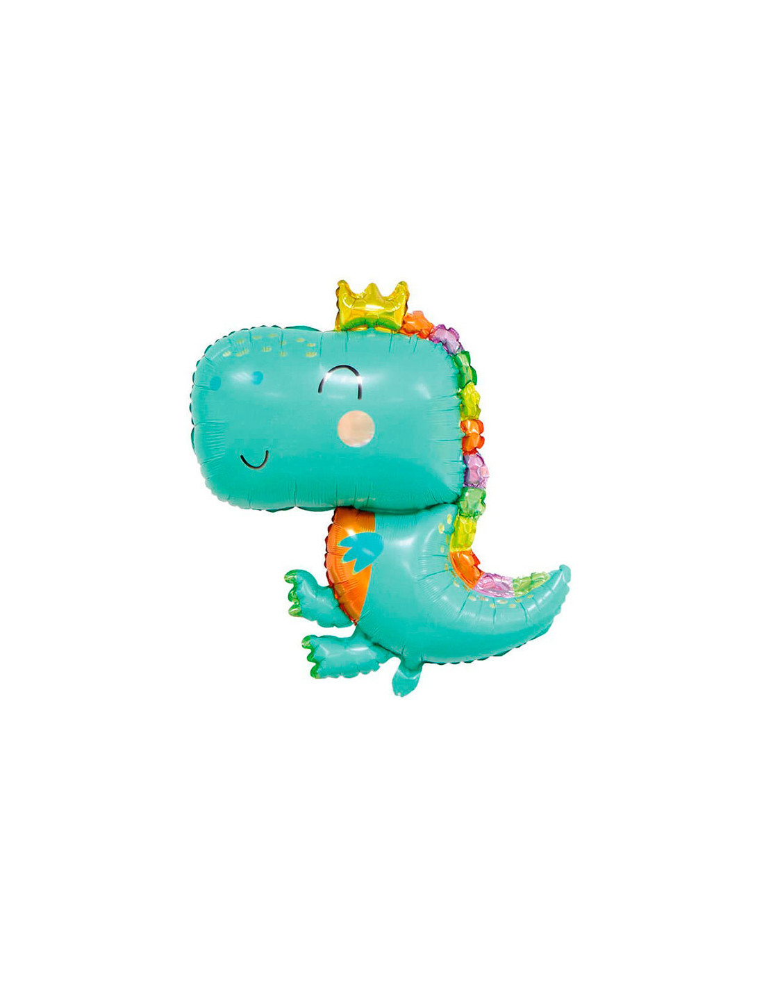 Globo dinosaurio happy que incluye un globo con forma de dinosaurio de 90x69cm aproximadamente.