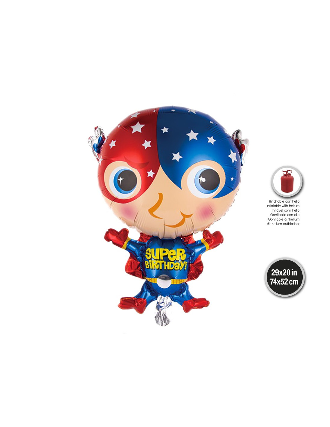 Alegra la decoración de tu fiesta temática con este llamativo globo de foil con forma de súper héroe.