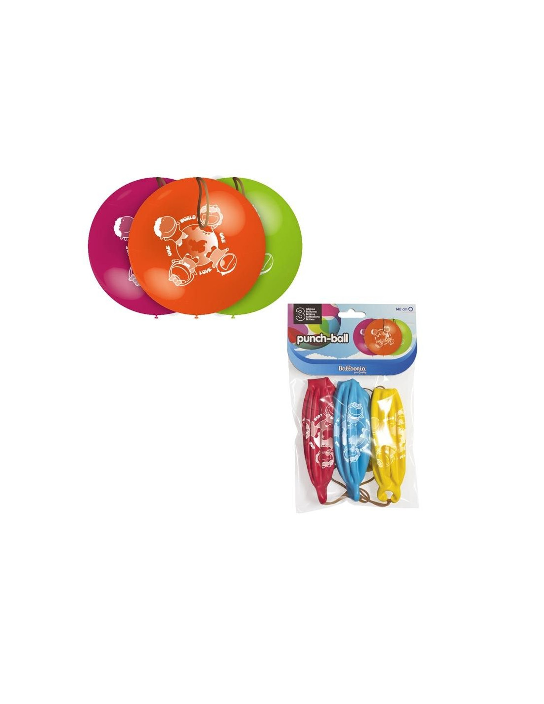 Globo punchball para tu fiesta de cumpleaños más peliaguda y divertida en la que los más pequeños de la familia podrás descargar sus energías golpenándolos como un verdadero saco de boxeo americano. Incluye una bolsa de globos punchball, que contiene 3 globos de unos 140 cm de perímetro.