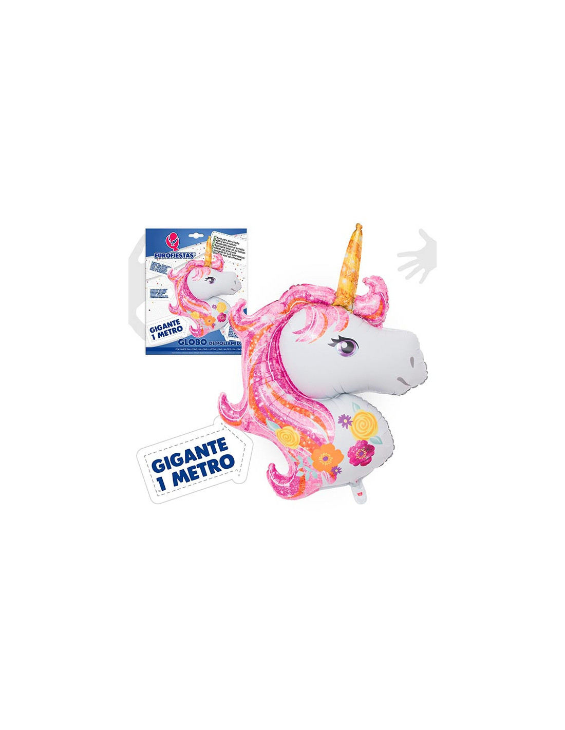 Contiene un globo de unicornio en tonos metalizados que mide 100cm una vez inflado. Es pato para helio, pero si no quieres usarlo incluye dos adhesivos a doble cara para colocarlo dónde lo necesites y que se vea desde cualquier zona de la fiesta. Recomendamos utilizarlos con aire y adhesivos en lugar de helio ya que, debido a su peso, tamaño y forma, no está garantizado el flotado de todos los modelos.