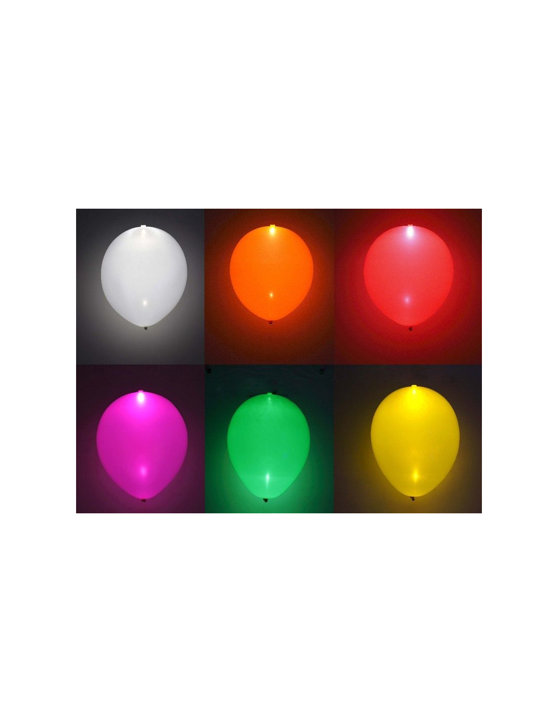Bolsa de 5 globos con luz, del mismo color que el globo. Tiene 30cm aproximadamente de diámetro. Duración 20h.