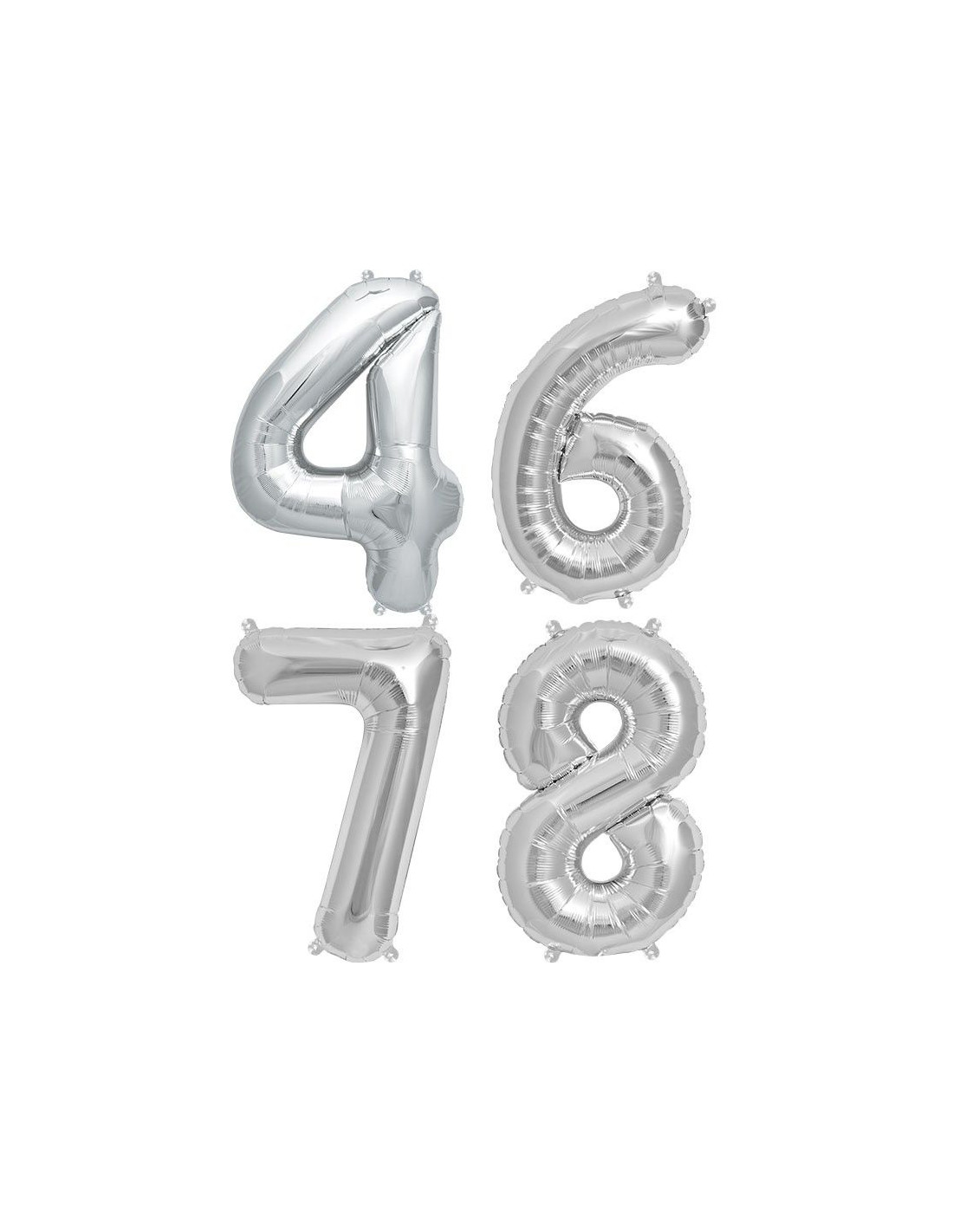 Incluye globos de números metalizados con unas dimensiones de 42cm de altura y 16cm de diámetro. Precio por unidad. Se hinchan con aire.