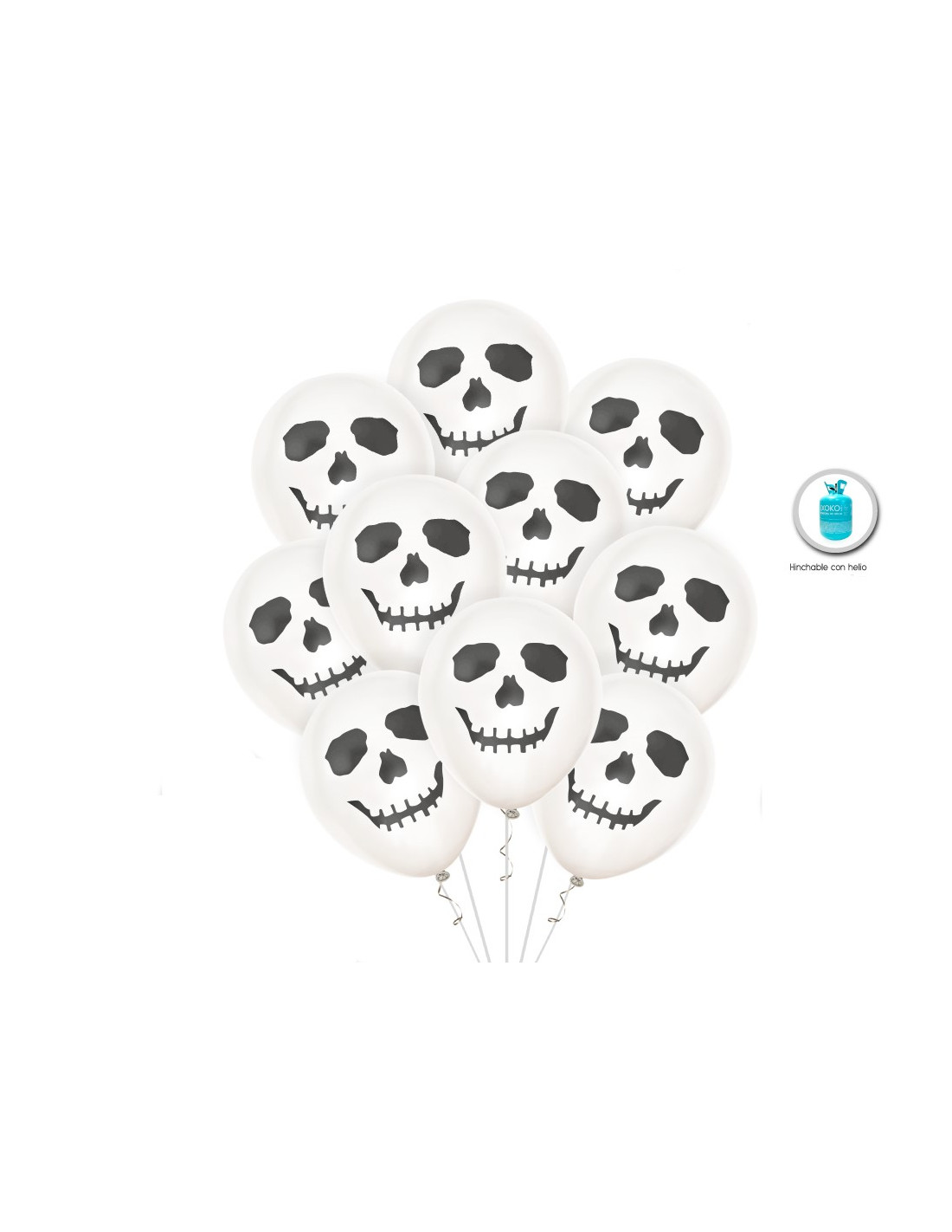 Globos Halloween calaveras para decorar tu fiesta de terror. Contiene 10 globos blancos estampados como una calavera.