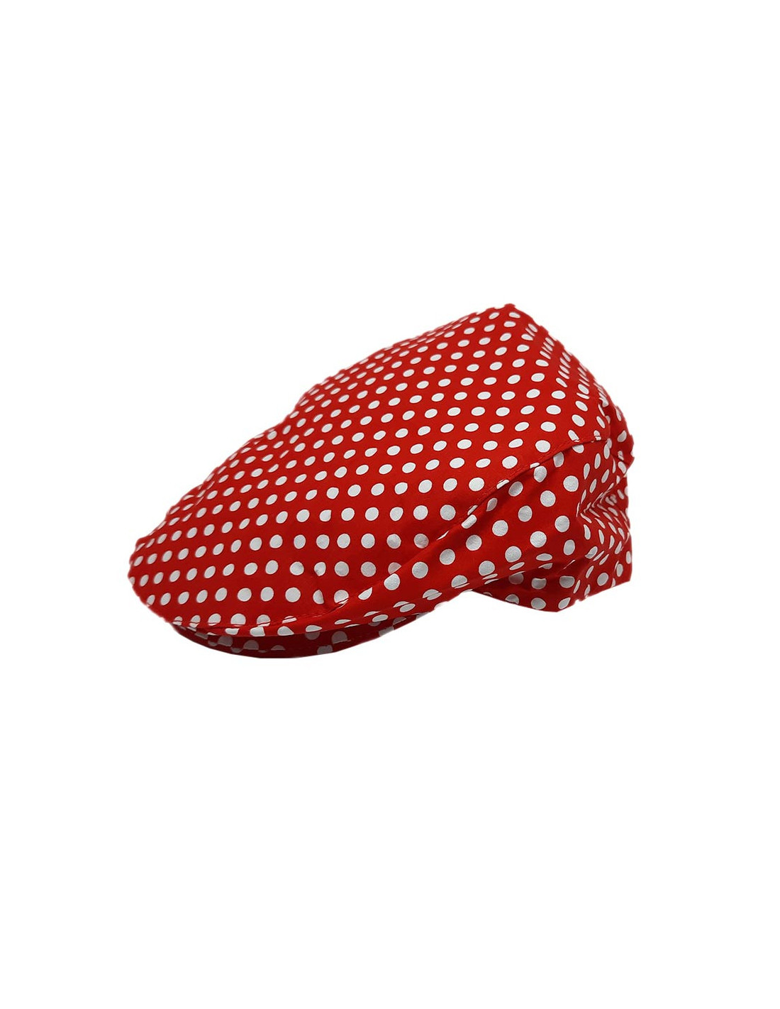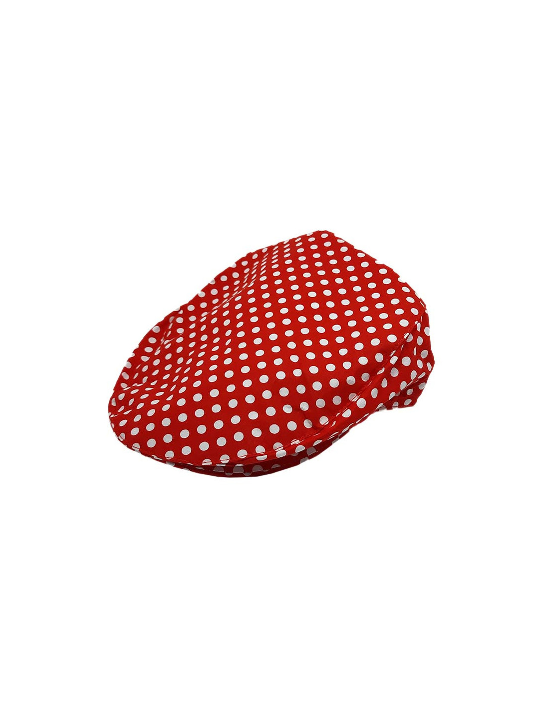 Con esta gorra plana de lunares podrás dar el toque perfecto a tu traje típico regional. Incluye gorra plana con lunares blancos. Disponible en color rojo y varias tallas: 54,56,58,60... Ideal para tu traje de chulapo madrileño o para darle un toque original a tu traje típico andaluz.