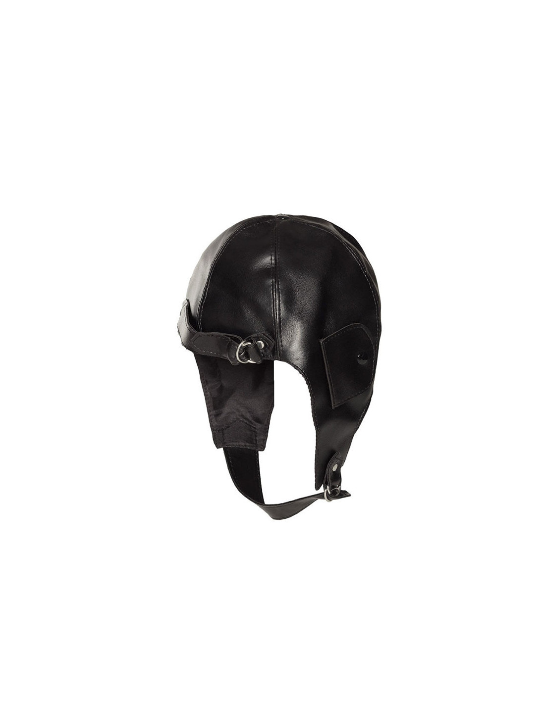 Contiene un gorro con cierre en la barbilla y de imitación al cuero.