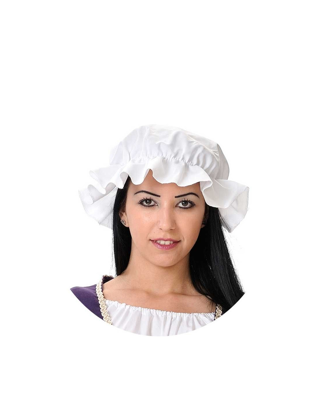 Gorro medieval para mujer con el que podrás transformarte en cualquiera de los oficios medievales de la época: mesonera, hornera o incluso en una simple campesina. Fabricado en tela de color blanco, cuenta con un elástico para ajustar perfectamente al tamaño de la cabeza.