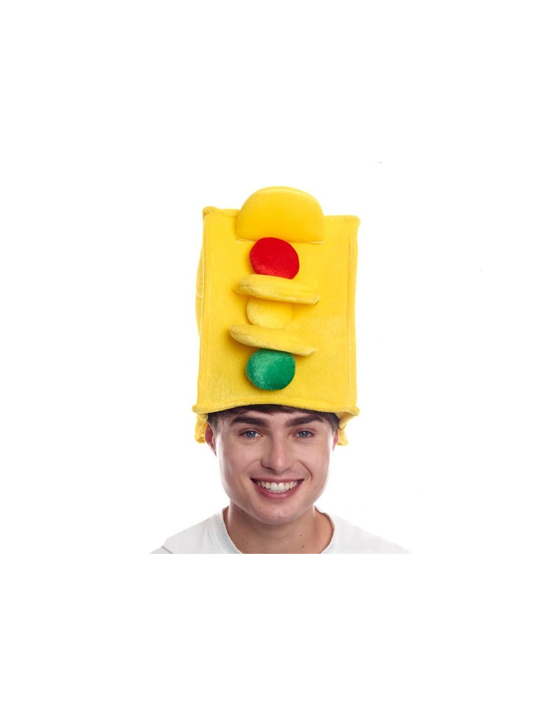 Sombrero con forma de semáforo confeccionado con tejido foamizado de 27x20x20cm.