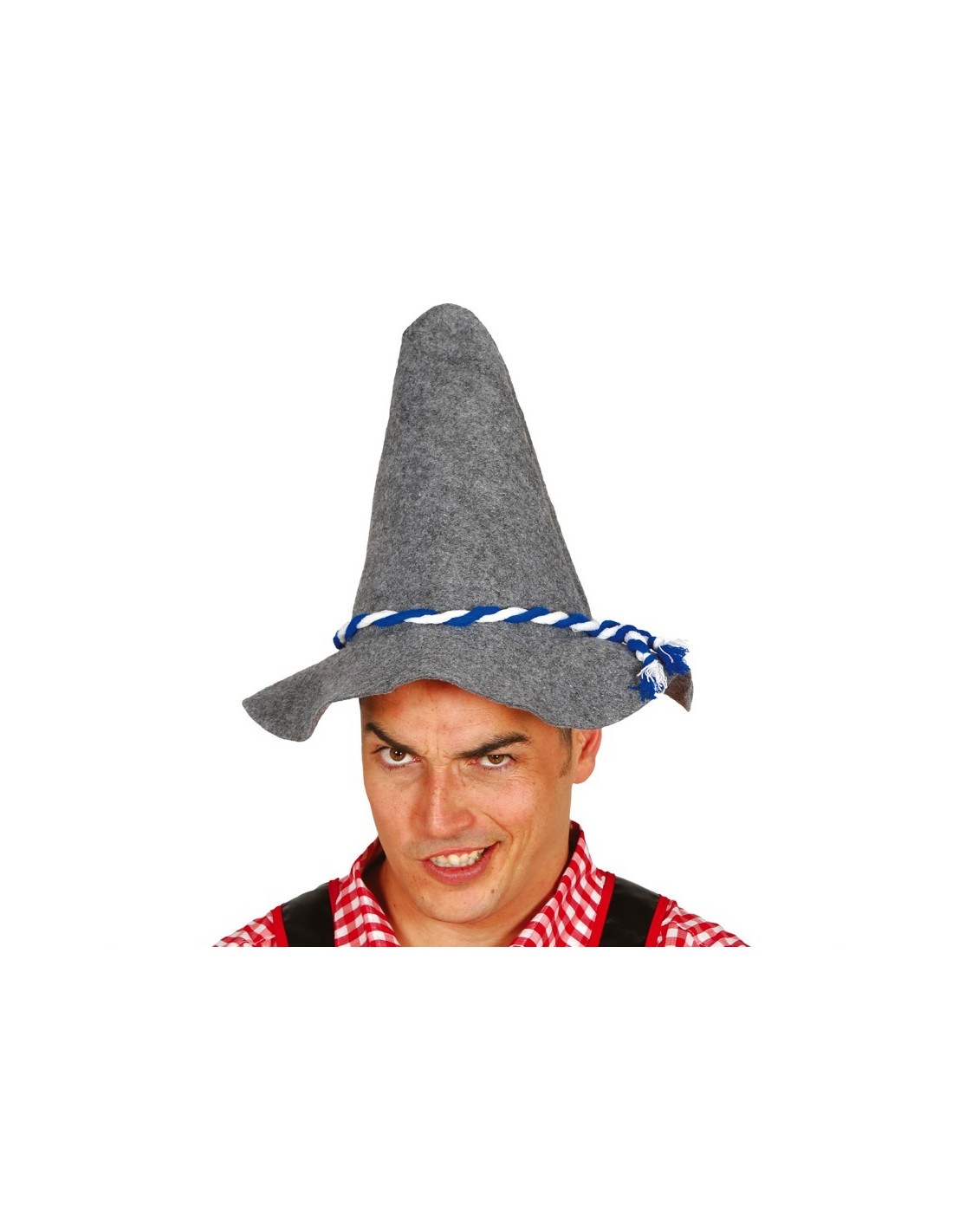 Gorro tirolés Oktoberfest de tela en color gris con cordón.