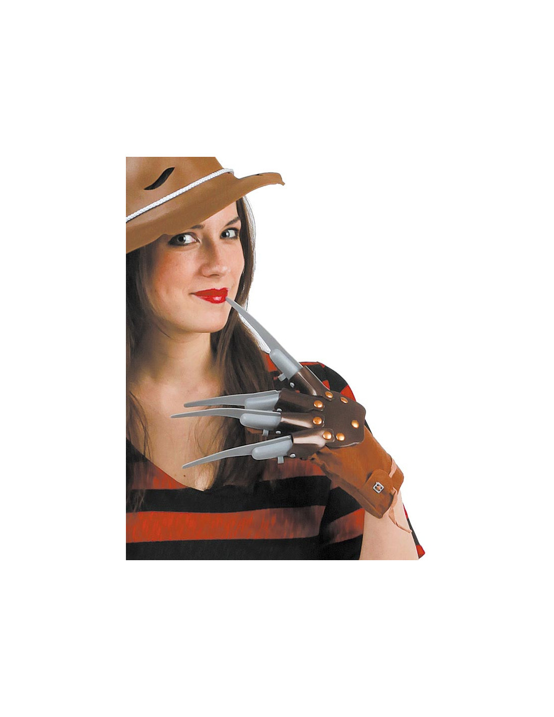 Complementa tu disfraz de Freddy para tu fiesta de Halloween y se capaz de entrar en las pesadillas de los demás con este guante Freddy Krueger. Fabricado en polipiel. Incluye guante Freddy Krueger como el que lucía en Pesadilla en Elm Street, con uñas articuladas para que puedas moverlo de manera realista.