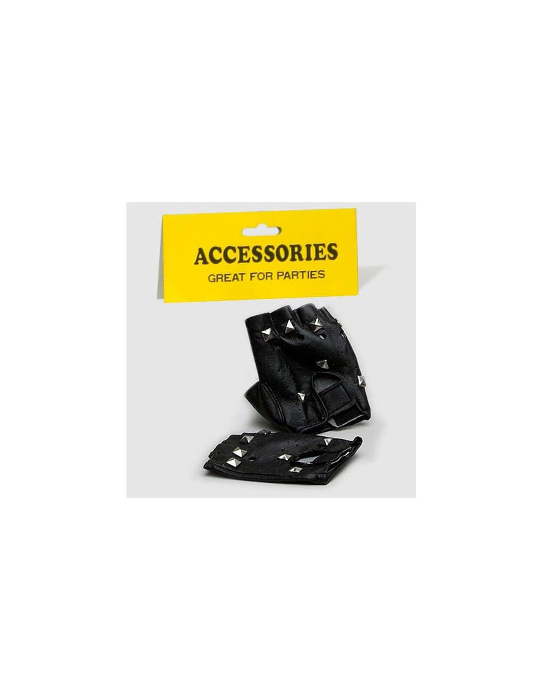 Conviértete en todo un macarra con estos guantes punk negros. Incluye un par de guantes punk de color negro, fabricado en polipiel, con los dedos al descbierto, y con tachuelas decorativas y velcro para ajustar perfectamente al tamaño de la muñeca.