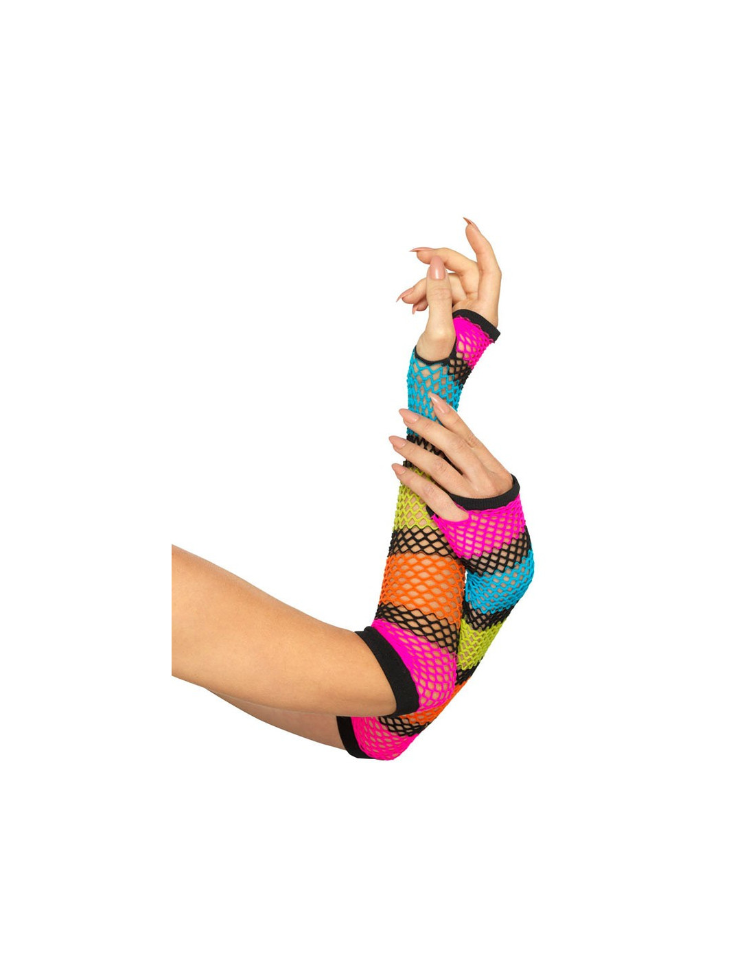 Llena de color tu disfraz de los años 80 con estos guantes de colores llamativos y serás el alma de la fiesta.