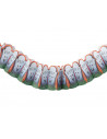 Adorna tu fiesta de Halloween con esta guirnalda de esqueletos colgantes terrorífica.