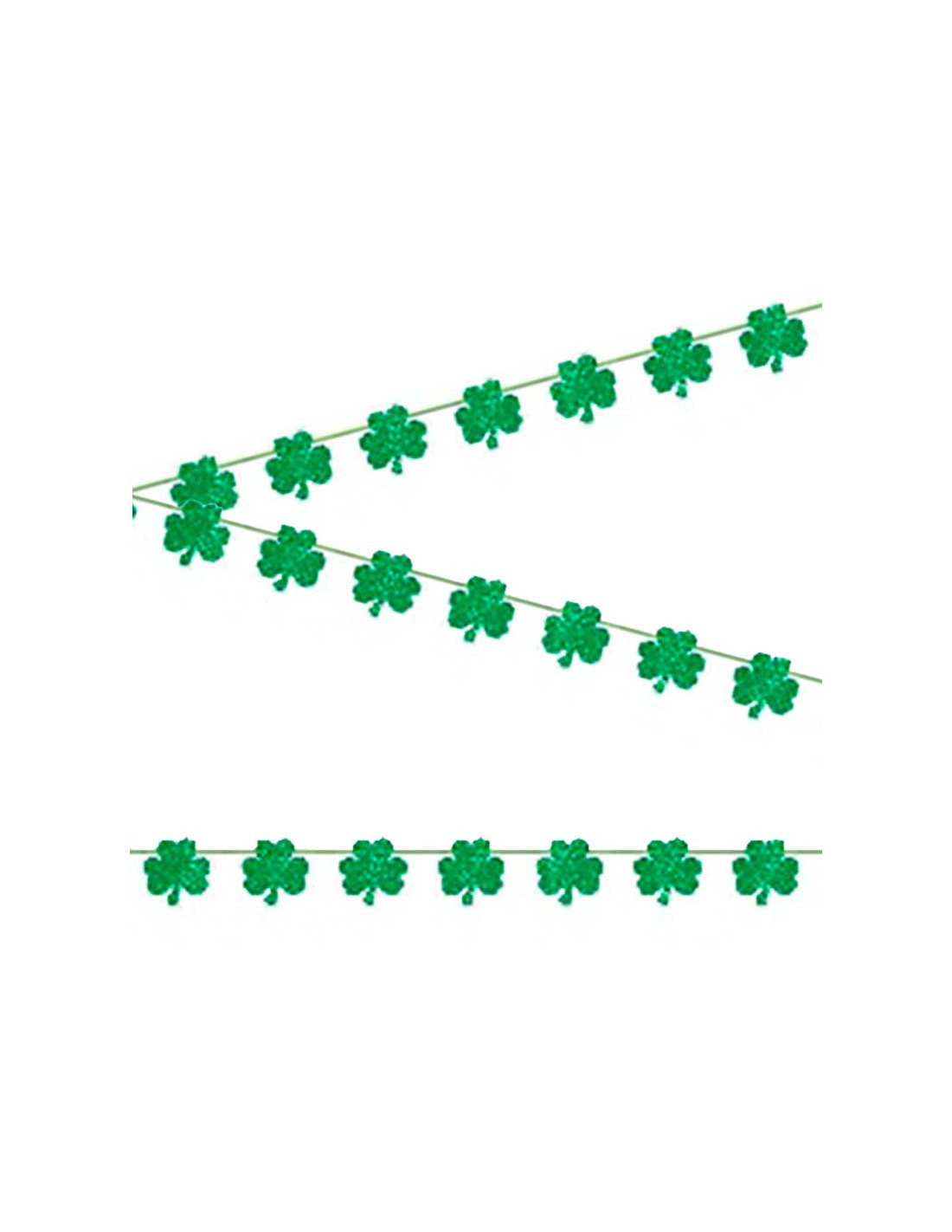 Incluye una guirnalda de tréboles con 3,6m de largo y pequeños tréboles de plástico verde metalizado.