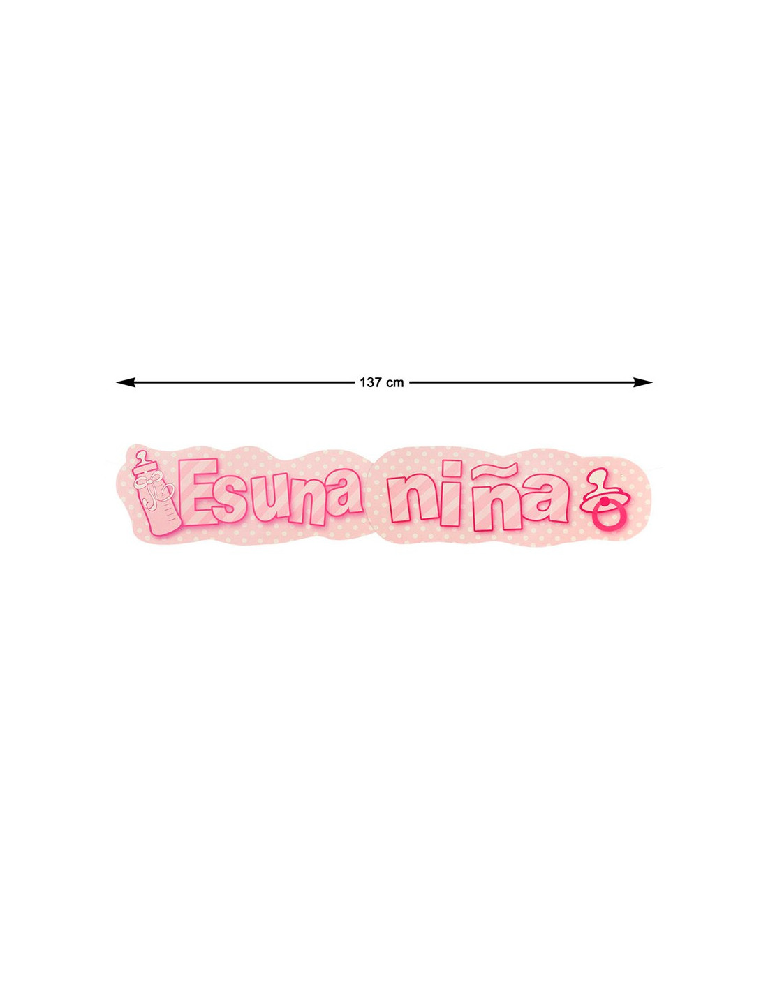 Celebrala llegada de un nuevo miembro a la familia con esta guirnalda 'Es una niña'. Anuncia el nacimiento de la pequeña con esta guirnalda rosa. Ideal para decorar una fiesta del bebé o babyshower.
