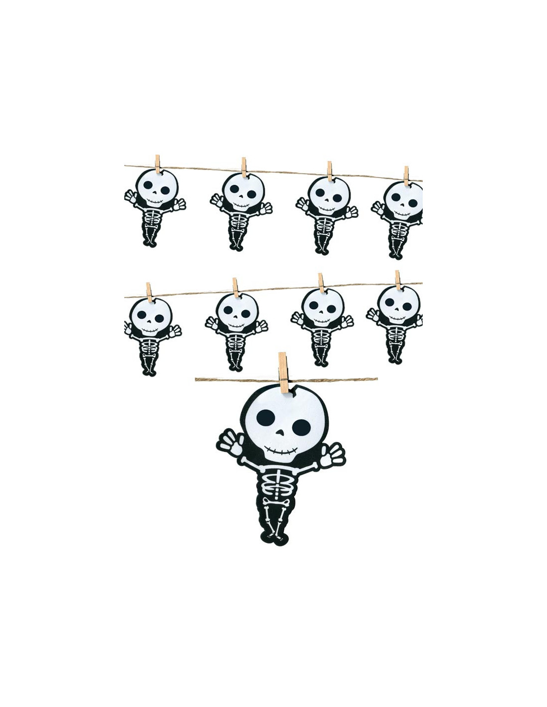 Original guirnalda esqueletitos para decorar tu fiesta de Halloween con niños. Estos simpáticos esqueletos son perfectos para una fiesta de terror infantil.