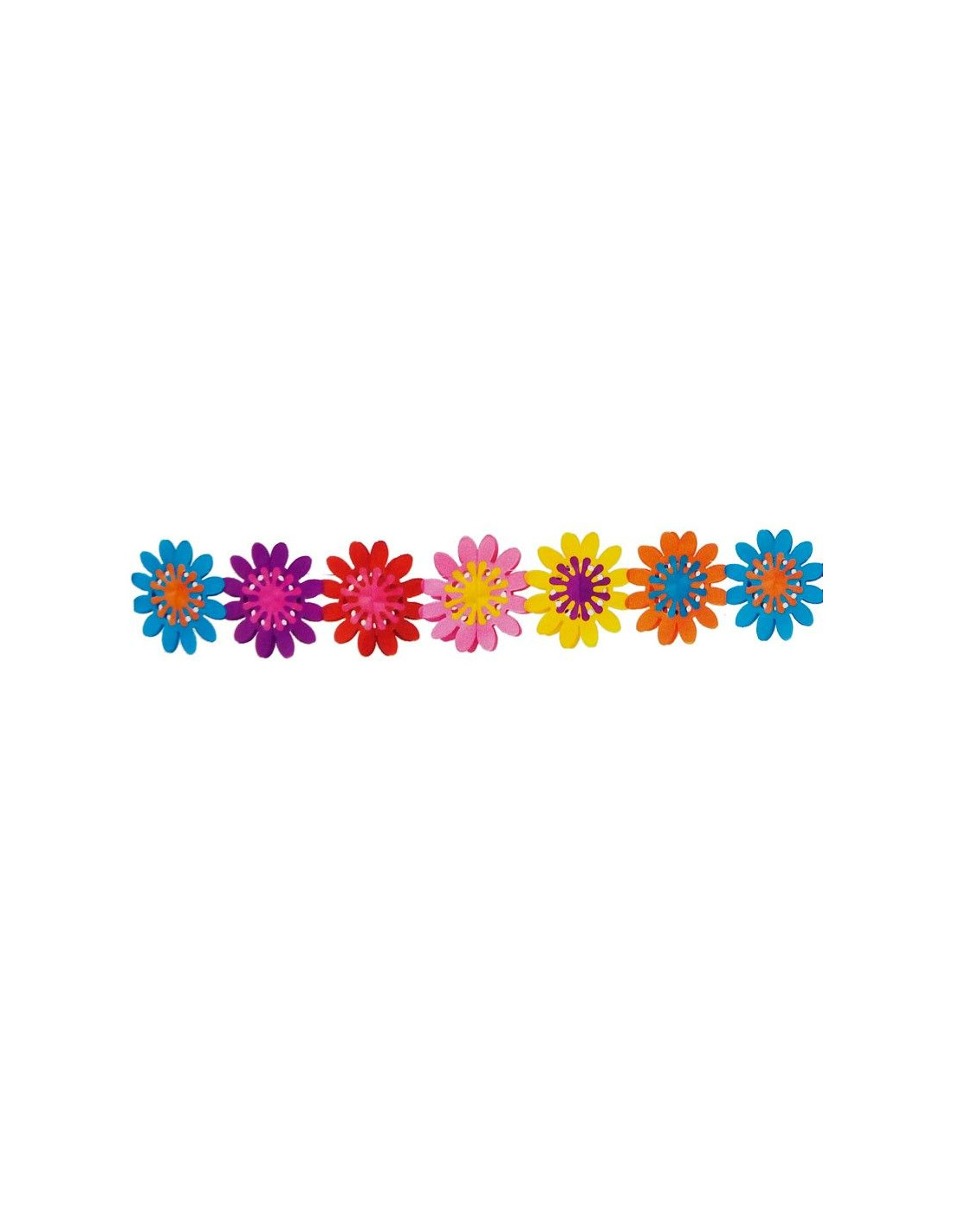 Guirnalda de flores de papel de diferentes colores. Tiene una longitud de 3m de longitud. Perfecta para darle un toque de color a tu fiesta o evento.