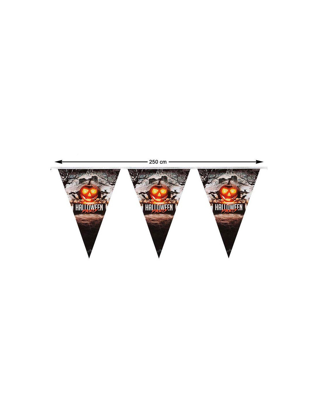 Consta de banderines triangulares y tiene una longitud de 250cm.