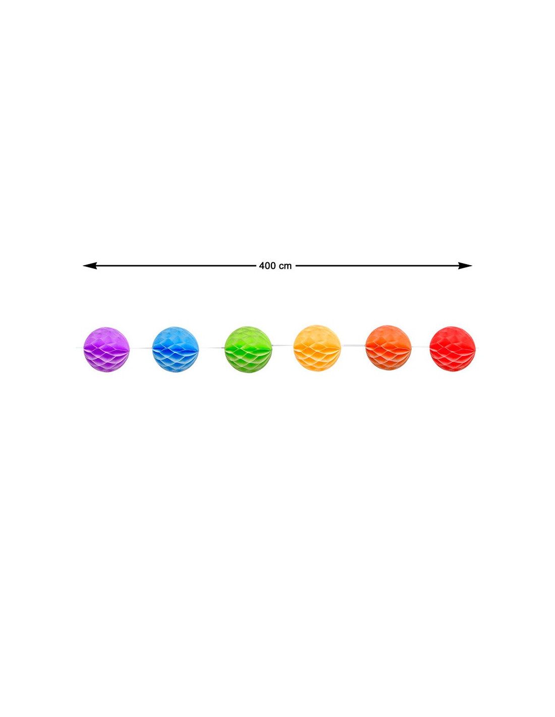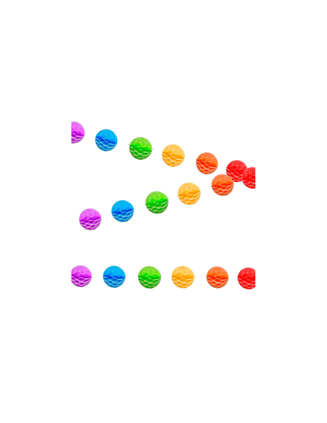 Guirnalda multicolor con 4m de largo aproximadamente compuesto por pompones de papel en distintos colores.