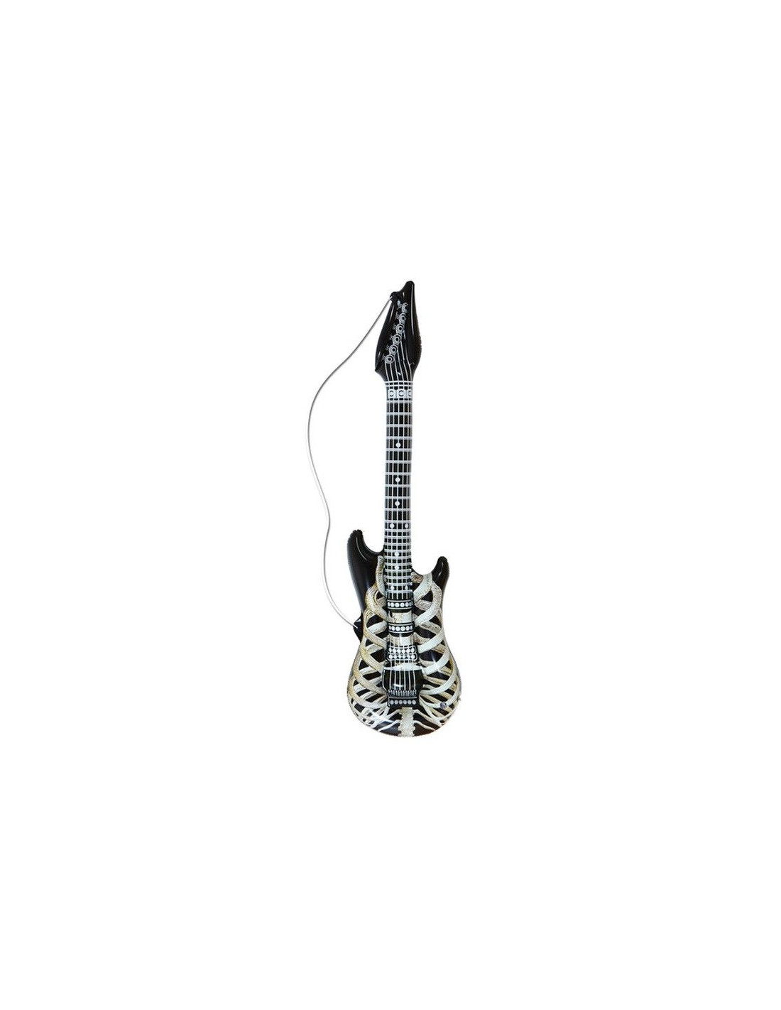 Guitarra eléctrica hinchable de esqueleto disponible en color negra y con la estructura ósea de un ser humano estampada sobre el cuerpo de la misma. Ideal si quieres convertirte en un rockero tenebroso.