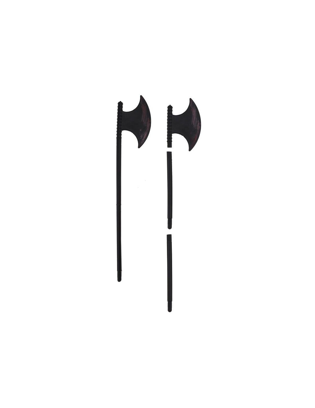 Hacha vikinga desmontable en tres piezas para facilitar su transporte. De color negro y fabricada de plástico, tieneunas dimensiones de 80cm de longitud. El mango se separa en dos, pudiéndose separar a su vez de la cabeza.