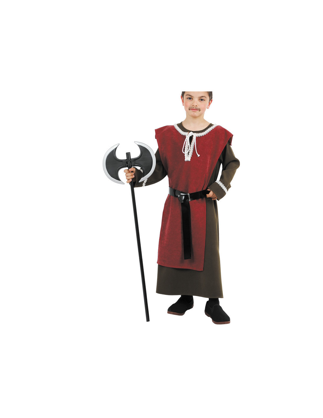 Hacha doble medieval o vikinga para tu traje de caballero de la Edad Media, para convertirte en el mismísimo Ragnar Lothbrock o en el verdugo más temido. Fabricada en plástico de color negro, con doble hoja y la parte del filo en plateado, presenta unas dimensiones de 80 x 25cm.