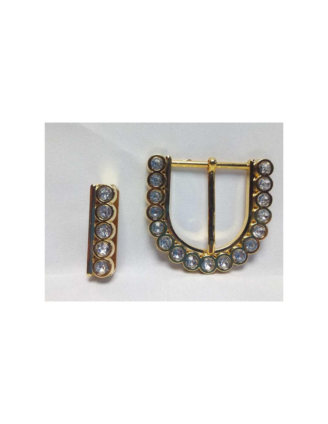 Hebilla dorada adornada con piedras brillantes, medidas 6x6,5cm.