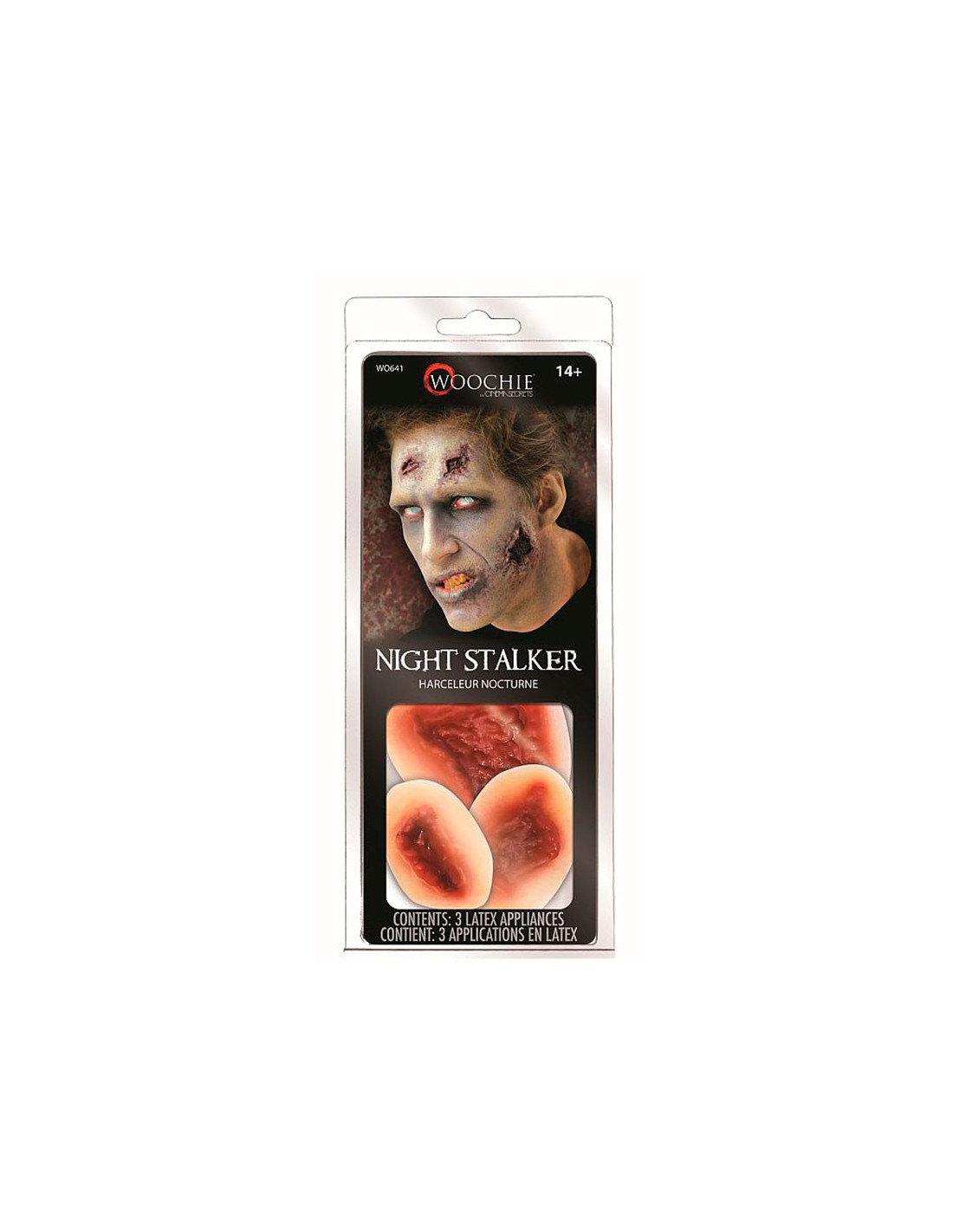 Contiene tres heridas de látex de distintas formas y tamaños. No incluye adhesivo pero puedes usar pegamento para postizos o mástix para adherirlas a la piel.