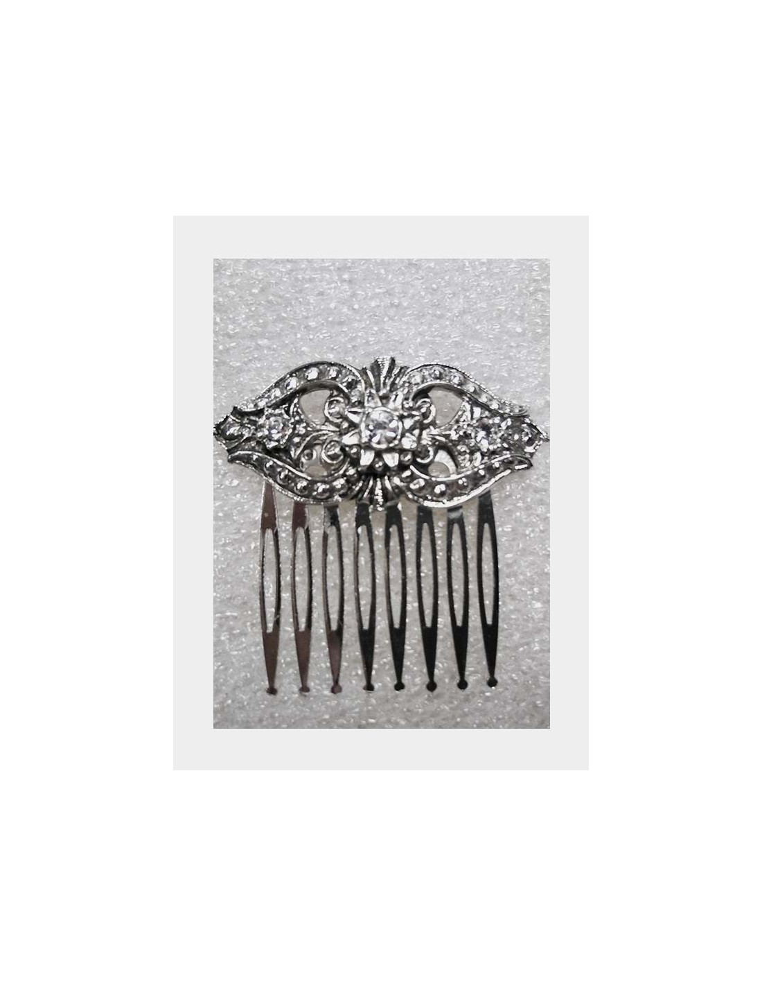 Esta horquilla tiene unas piedras incrustadas en color blanco. Tiene un tamaño de 4x2cm y unas puas de 2,5cm