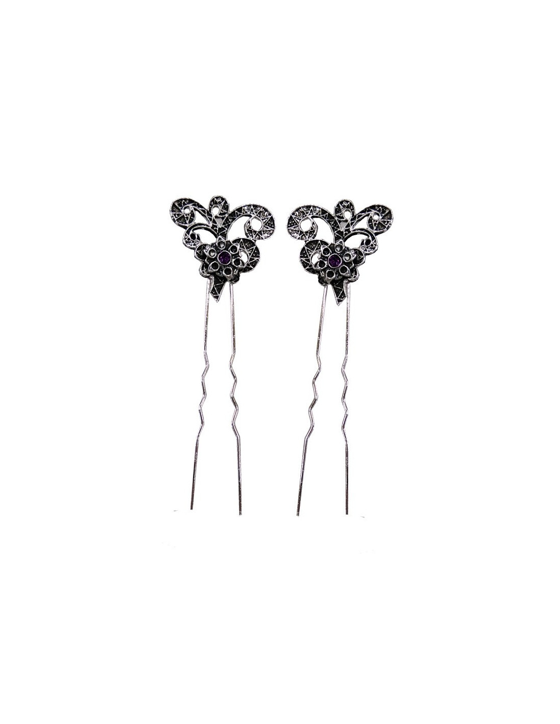 Preciosas horquillas regionales con piedras de color incrustadas. Tienen unas medidas de 9,5x3cm. Precio por pareja, contiene dos horquillas.
