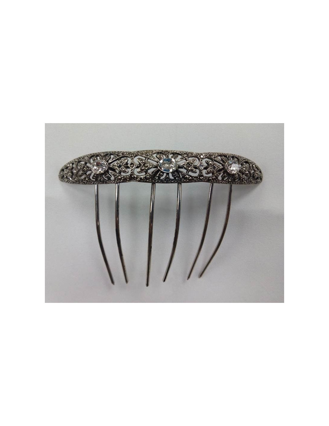 Horquilla para complementar tu traje regional, de 12x8cm, adornada por magnificas piedras blancas.
