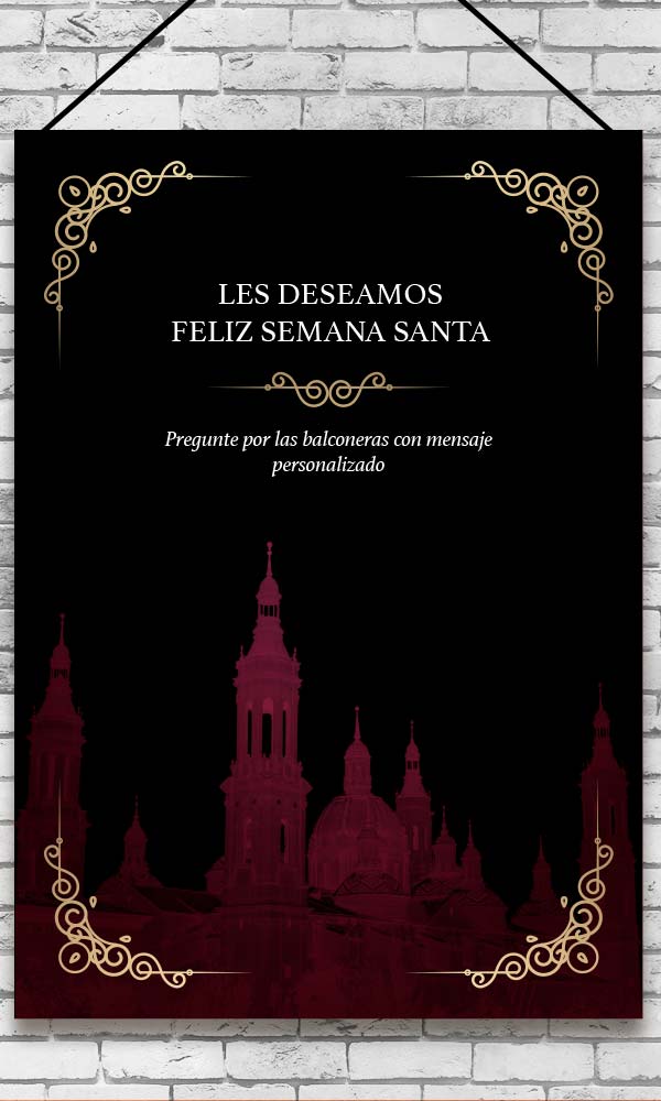 La Semana Santa sigue presente y se celebra desde los balcones, muestra tu orgullo cofrade haya o no haya pasos. Balconeras personalizadas con el nombre de tu cofradía, la imagen de vuestro paso y vuestro mensaje a elegir. Totalmente personalizado o sobre nuestros diseños de muestra.
