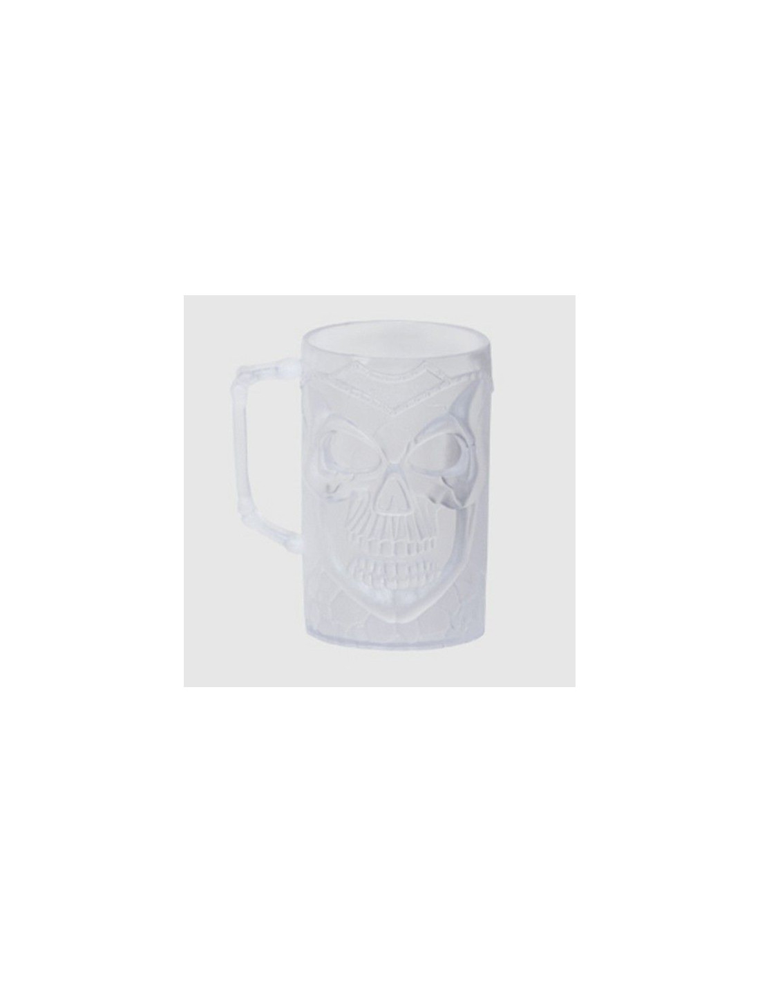 Jarra de plastico, decorada con con caras de calavera, para que tus invitados se sientan integrados con la fiesta de terror.