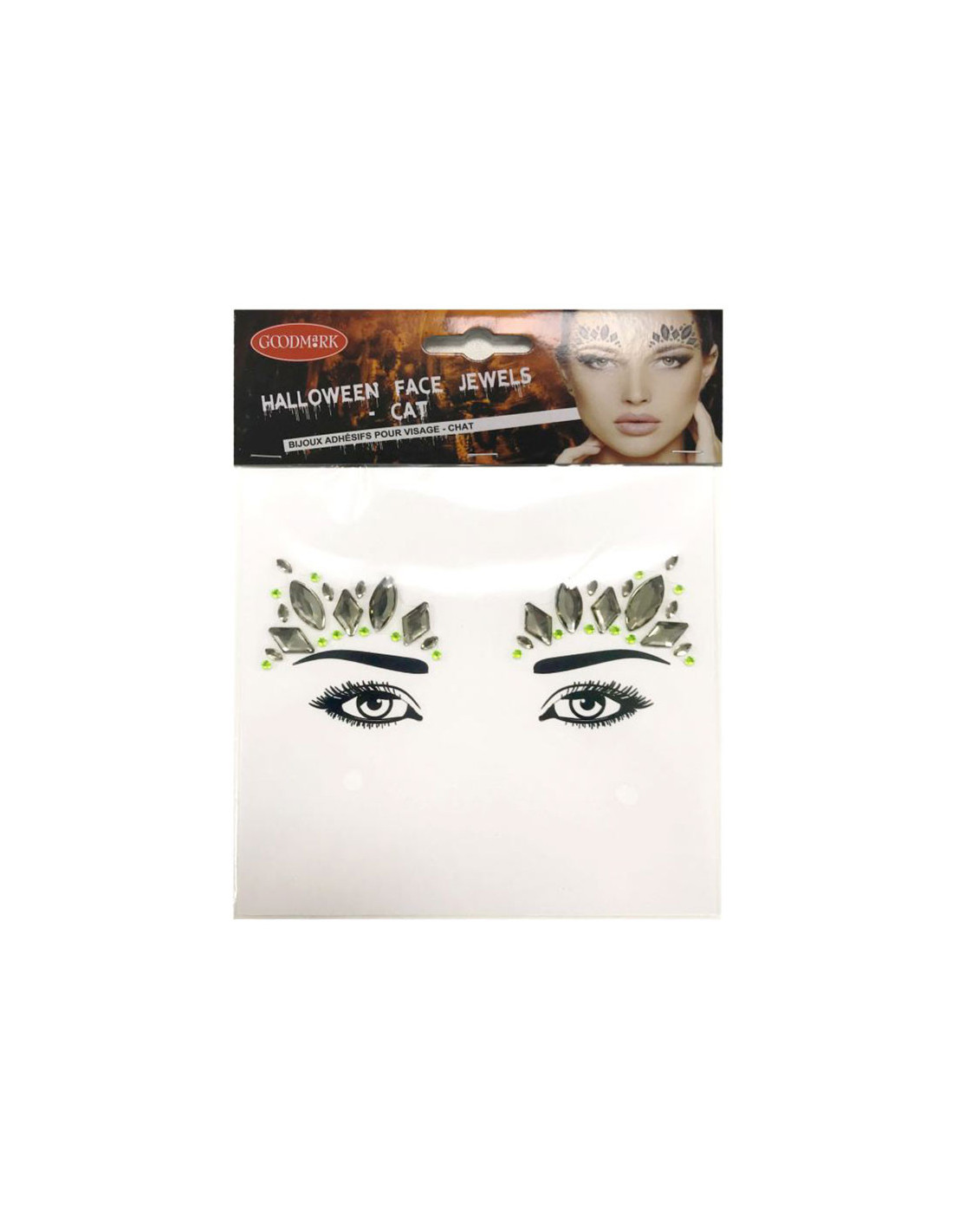 Joyas adhesivas felino que incluye un set de piedras auto-adhesivas para la cara.