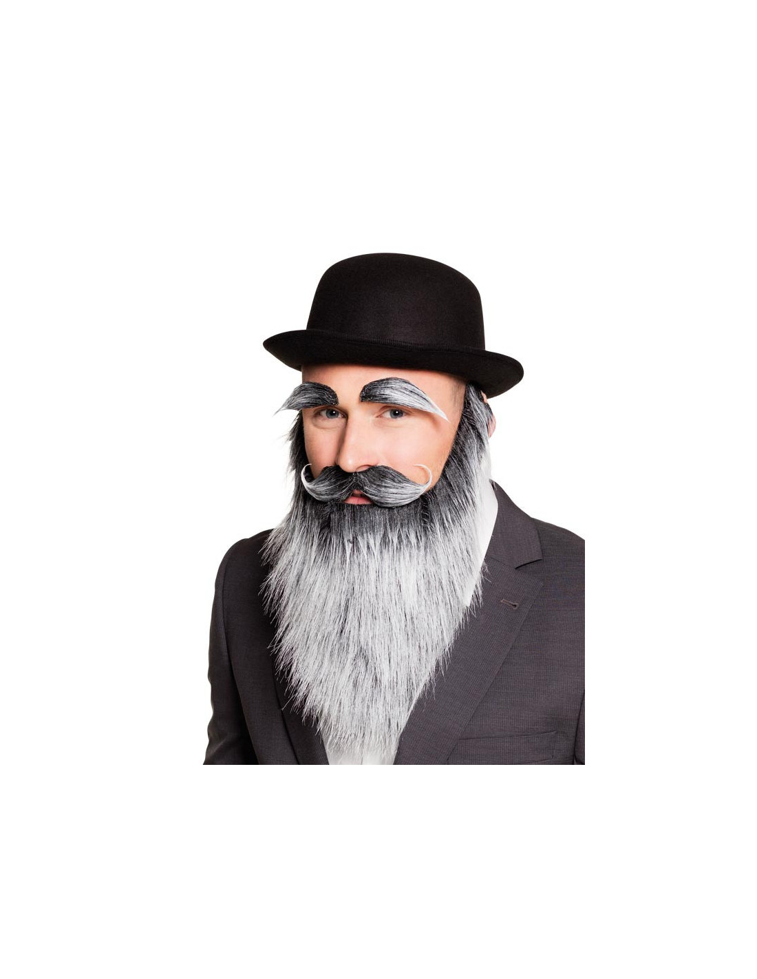 Kit anciano años 20 que incluye cejas, bigote y barba con banda elástica y autoadhesivo.