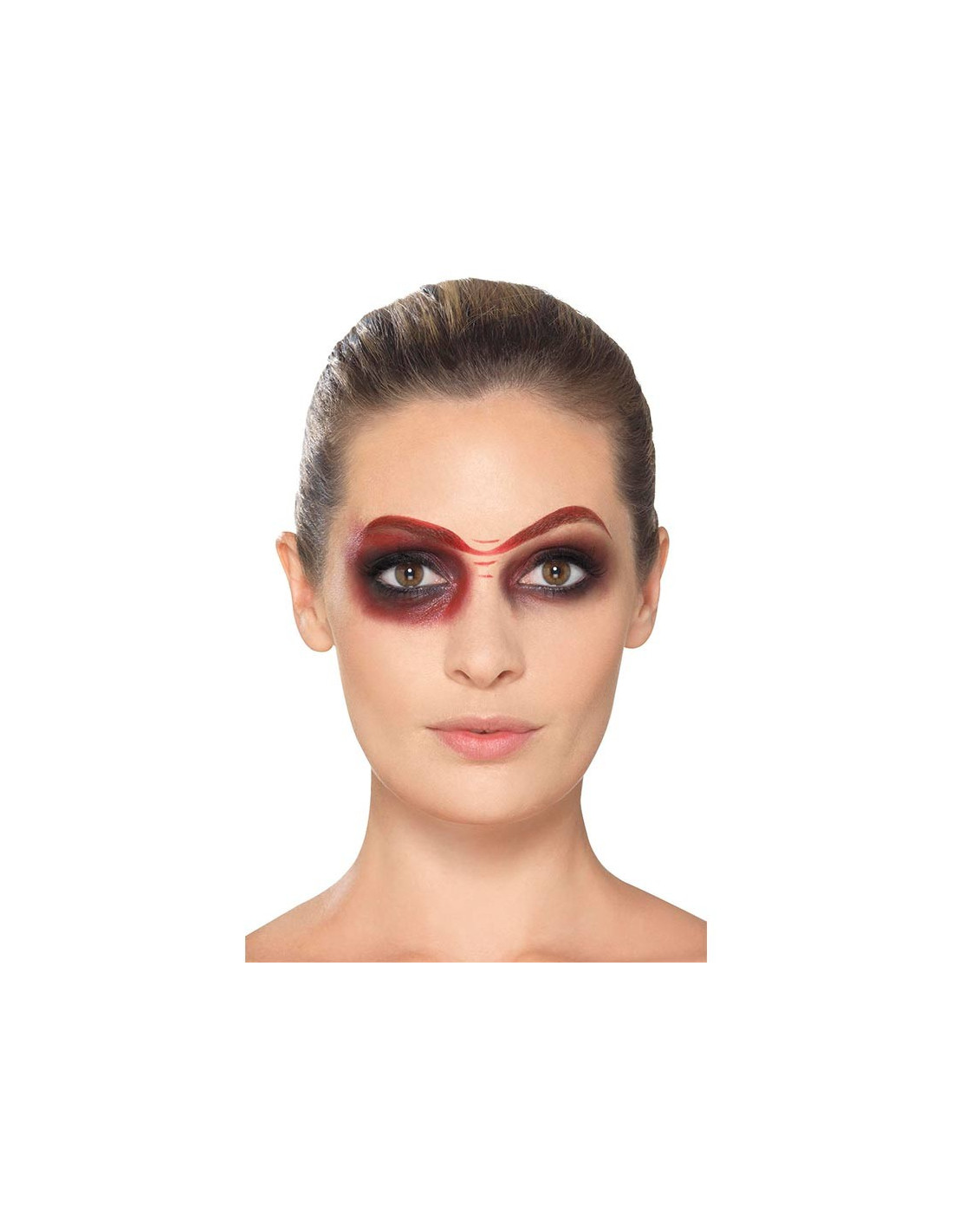 El kit maquillaje Chucky contiene maquillaje al agua en rojo y negro, pincel y tatuajes temporales.