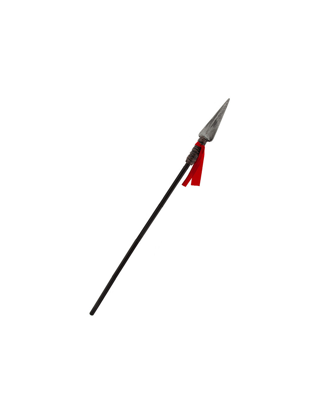 Contiene una lanza de gladiador de plástico que mide 150cm de alto y 10cm en la parte más ancha. Es desmontable y tiene una tela roja a modo decorativo en la parte superior.