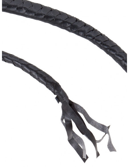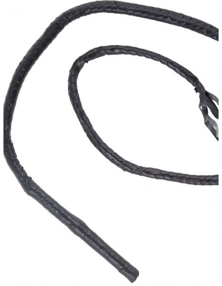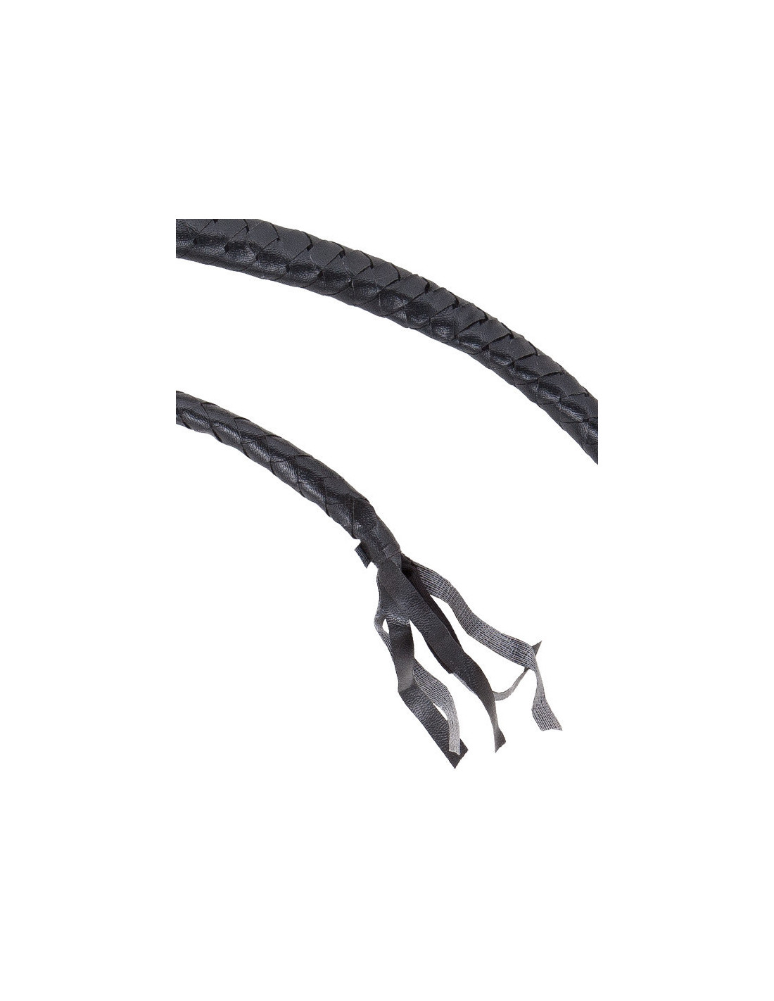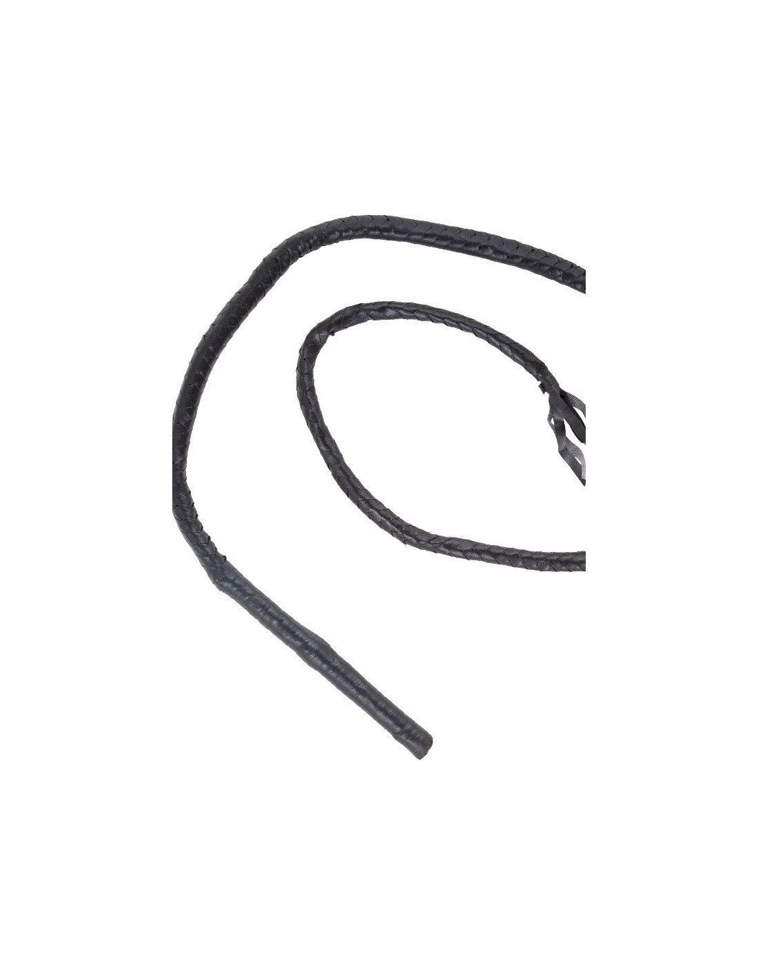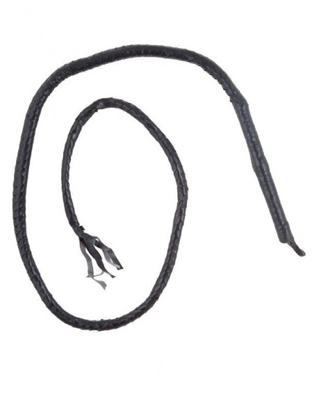 Látigo de piel en color negro y con unas dimensiones de 190 cm de longitud. Ideal para ferias medievales o para tu disfraz de domador.
