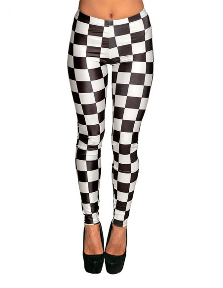Estas mallas elásticas largas tienen un estampado de cuadros blancos y negros como las banderas de meta.