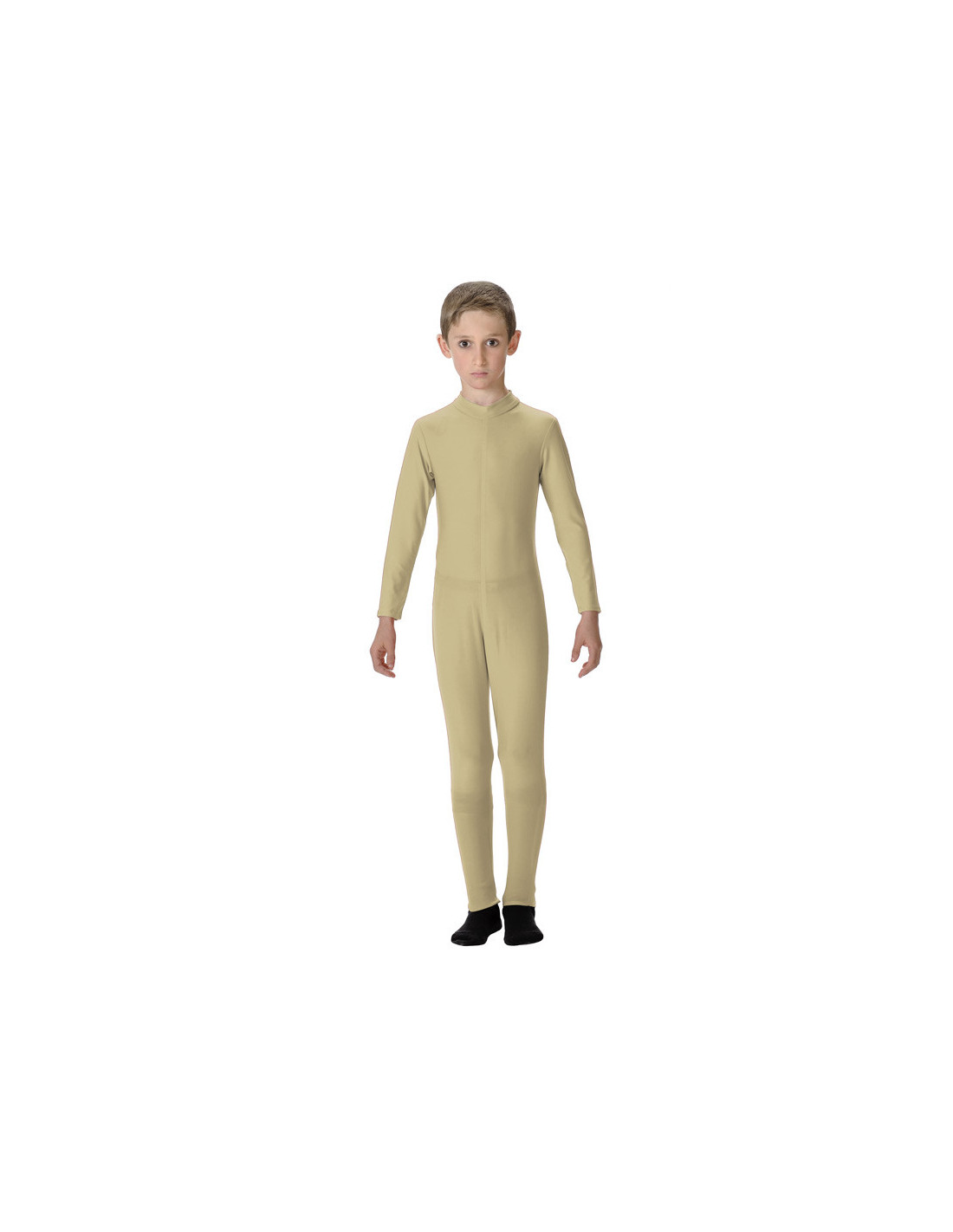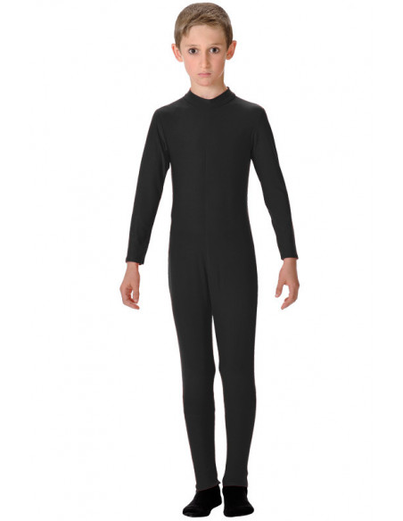 Malla de lycra infantil en tejido elástico de manga larga, con cabeza descubierta y cremallera en la parte trasera.