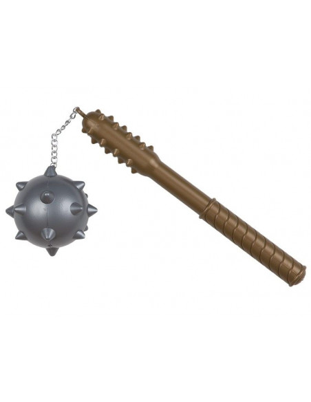 Mangual medieval fabricado de plástico, con el mango en color marrón y la cabeza en plateado. Dimensiones totales de 53 cm de longitud (33 cm el mango, 20 cm la parte de la cabena hasta la cabeza y 7cm de diámetro la propia cabeza).