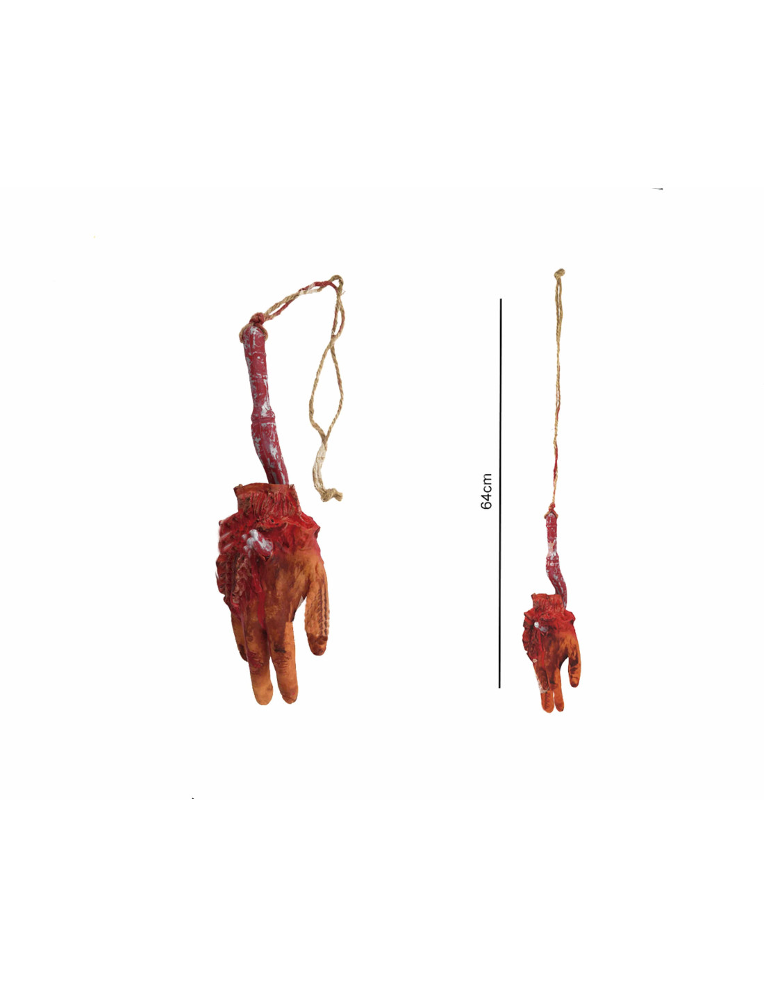 ¡Una carnicería! Esta mano ensangrentada es muy realista, simula haber sido arrancada violentamente a un cuerpo. La mano lleva un gancho.