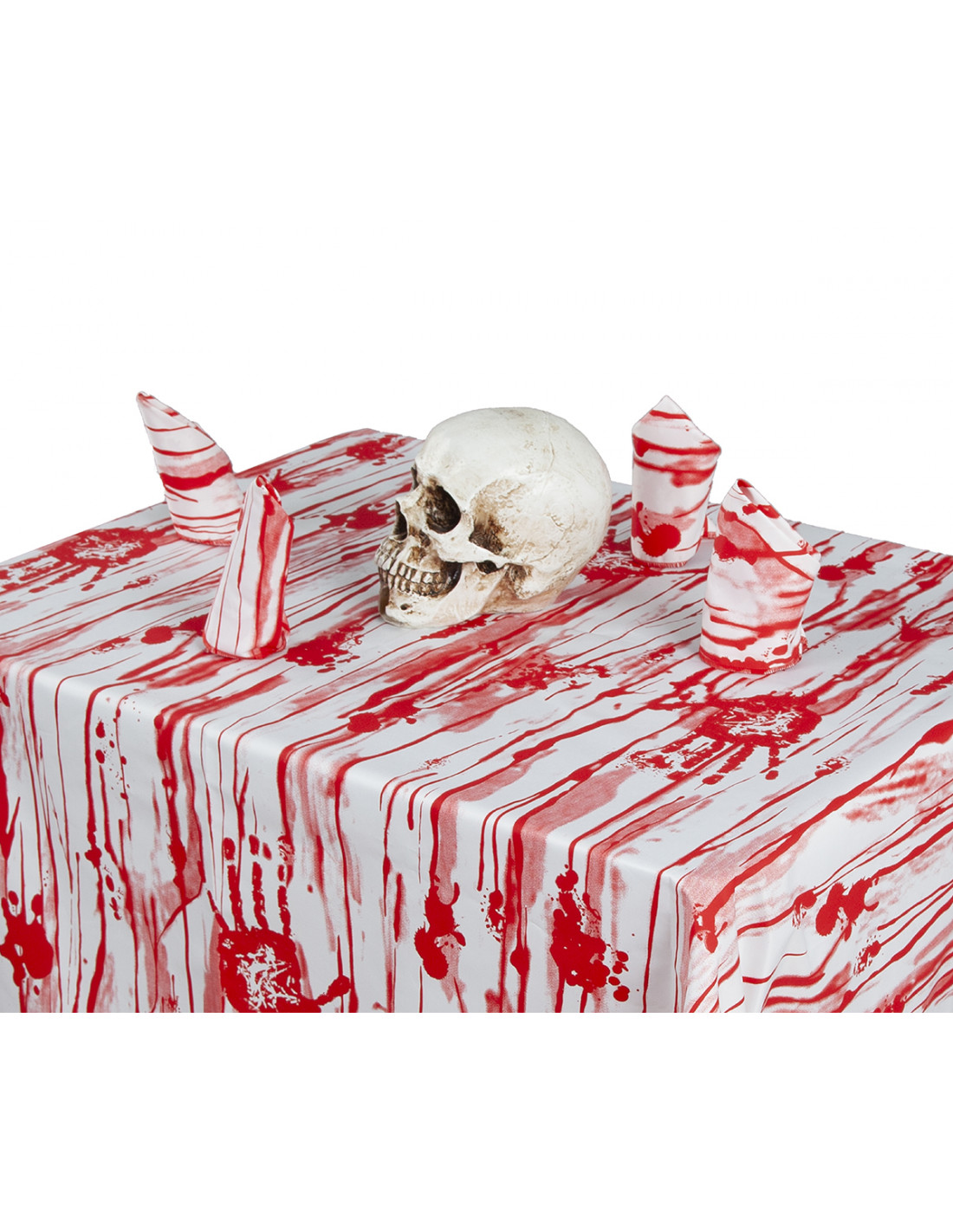 Mantel Halloween con servilletas para decorar la mesa en tu fiesta de Halloween. Combina estos productos con calaveras, telas de araña o dedos amputados para darle un toque mas creepy a tu menú.