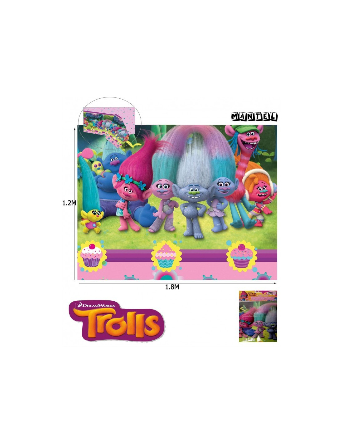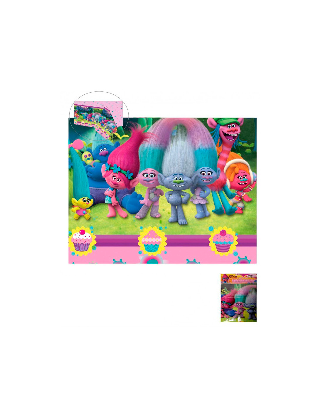 Mantel Trolls de plástico que tiene unas medidas de 180x120cm.