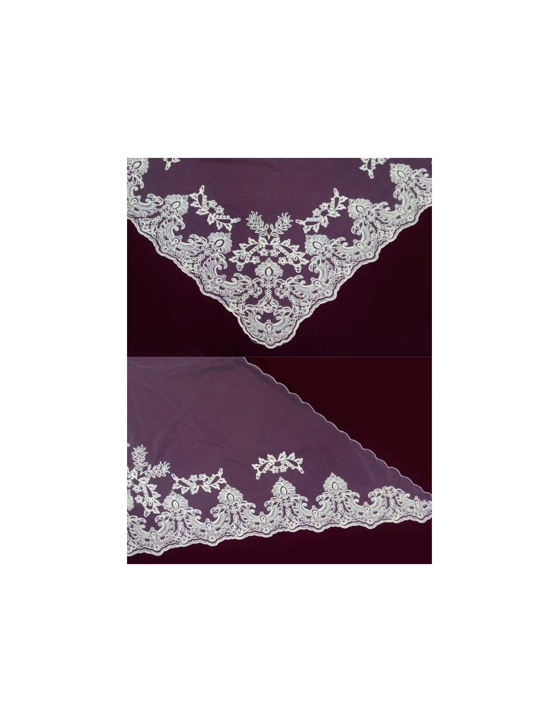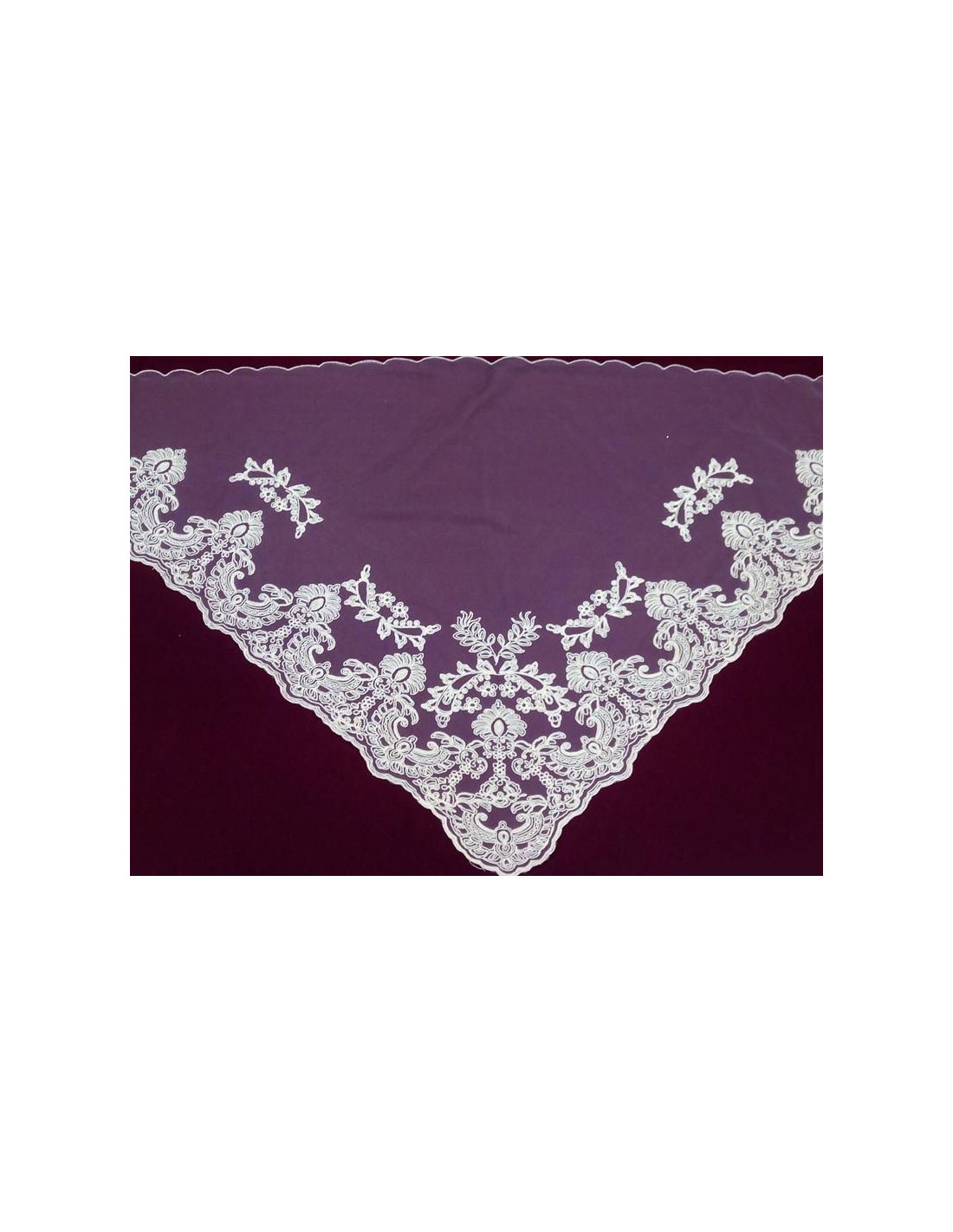 Mantilla para traje regional de tul, bordada de 90cm de lado.