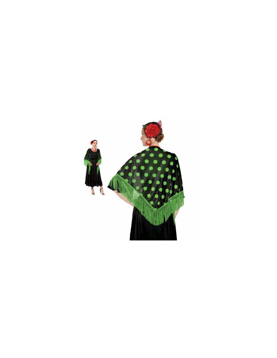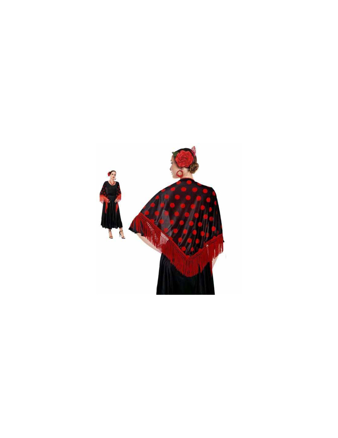 Mantón con topos y fleco cosido en los lados 160x90cm